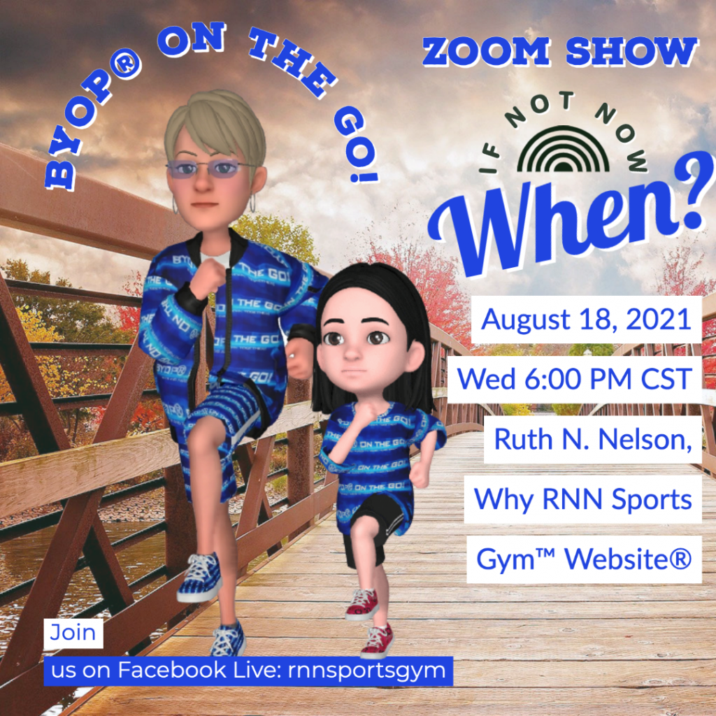 Co-Host Emma Sun will be interviewing RNN Sports Gym™ Founder Ruth N. Nelson on the next BYOP On The Go.  Emma will be asking Coach Nelson: how and why the website was created; benefits of being a member; and best ways to navigate the website plus the Virtual Gym inside the website.
