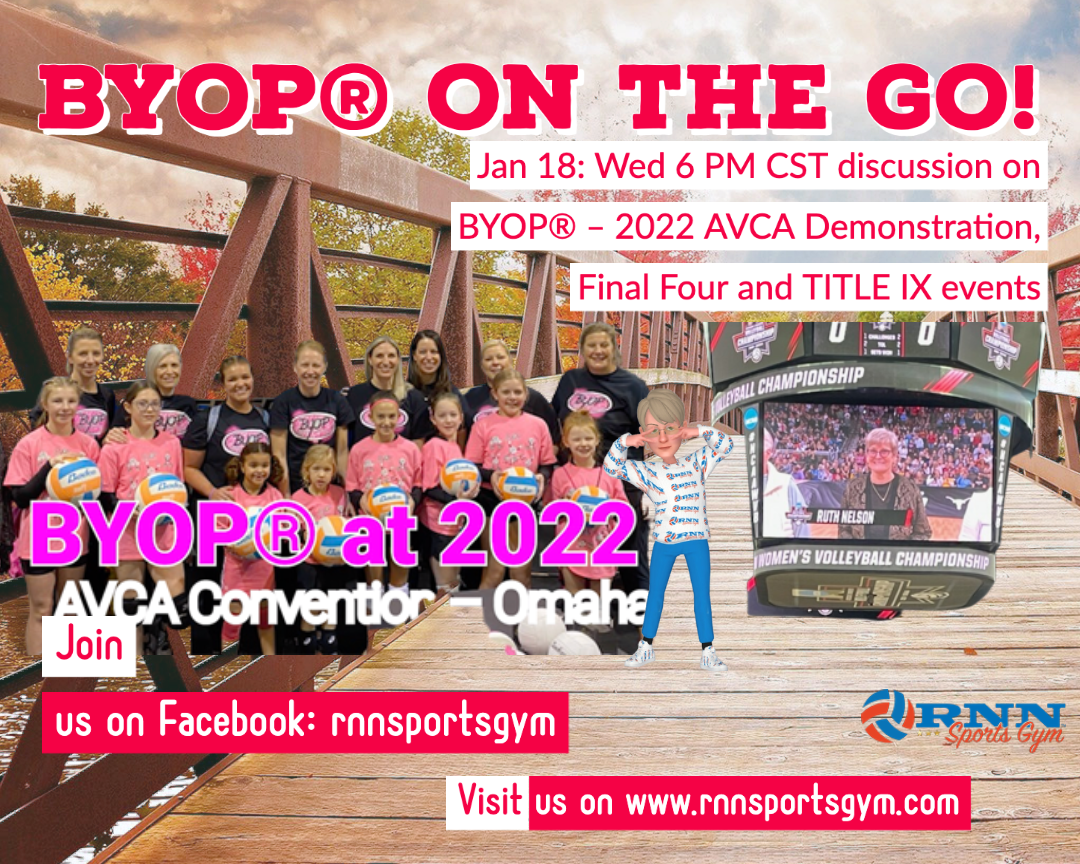 Founder / Host Ruth N. Nelson and Co-Host / former BYOP® Player Jayden Hisel will discuss the upcoming BYOP® demonstration at the Omaha AVCA Coaches Convention. This year’s Omaha demonstration will highlight families from Premier Nebraska Volleyball Club which will allow coaches to see how the Nelson methodology is utilized when developing a community volleyball program for ages 10 and under.  Jayden will also be sharing her BYOP® experiences from the 2011, 2014, and 2017 AVCA Coaches Convention .